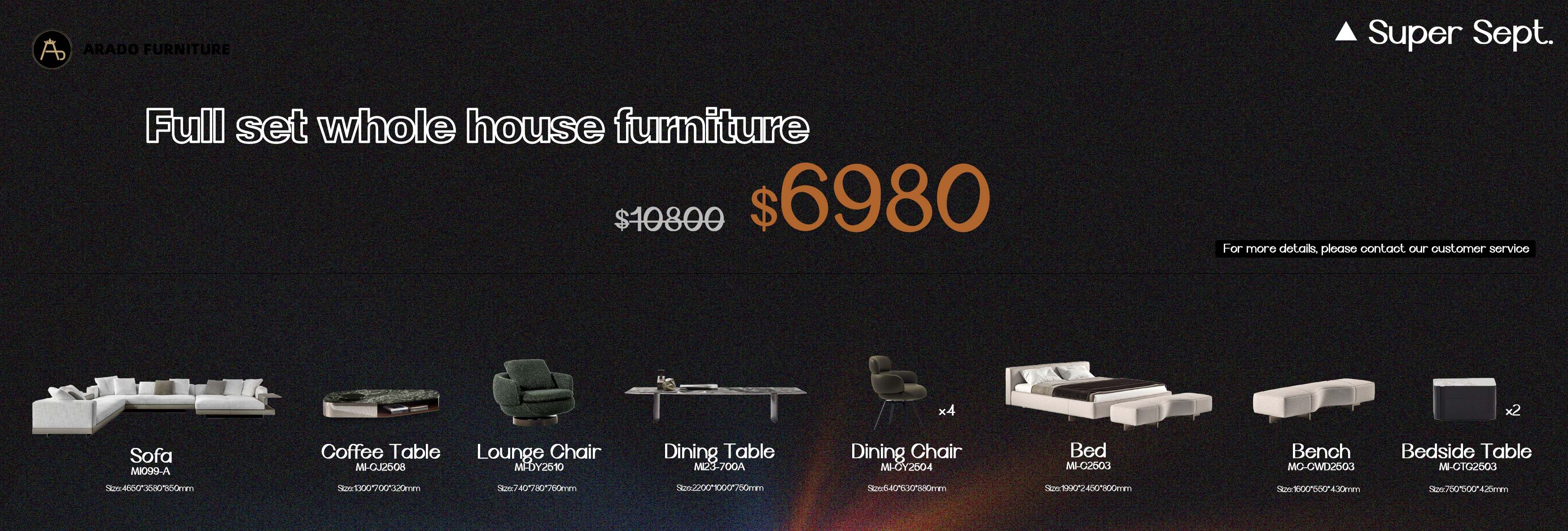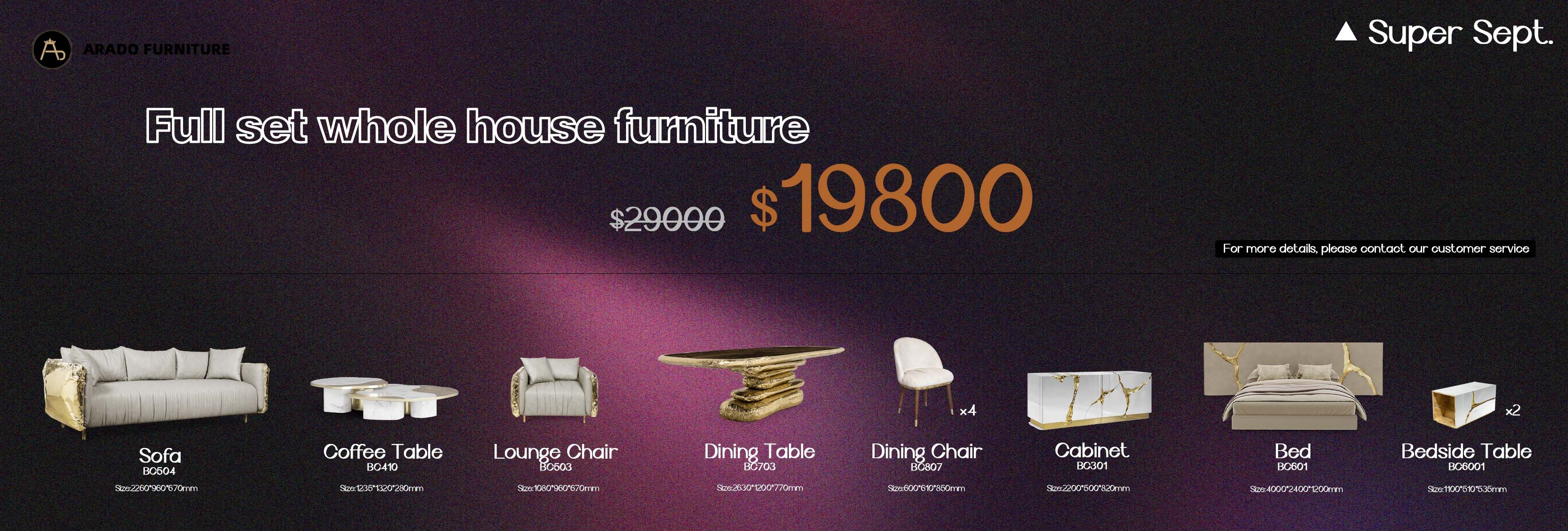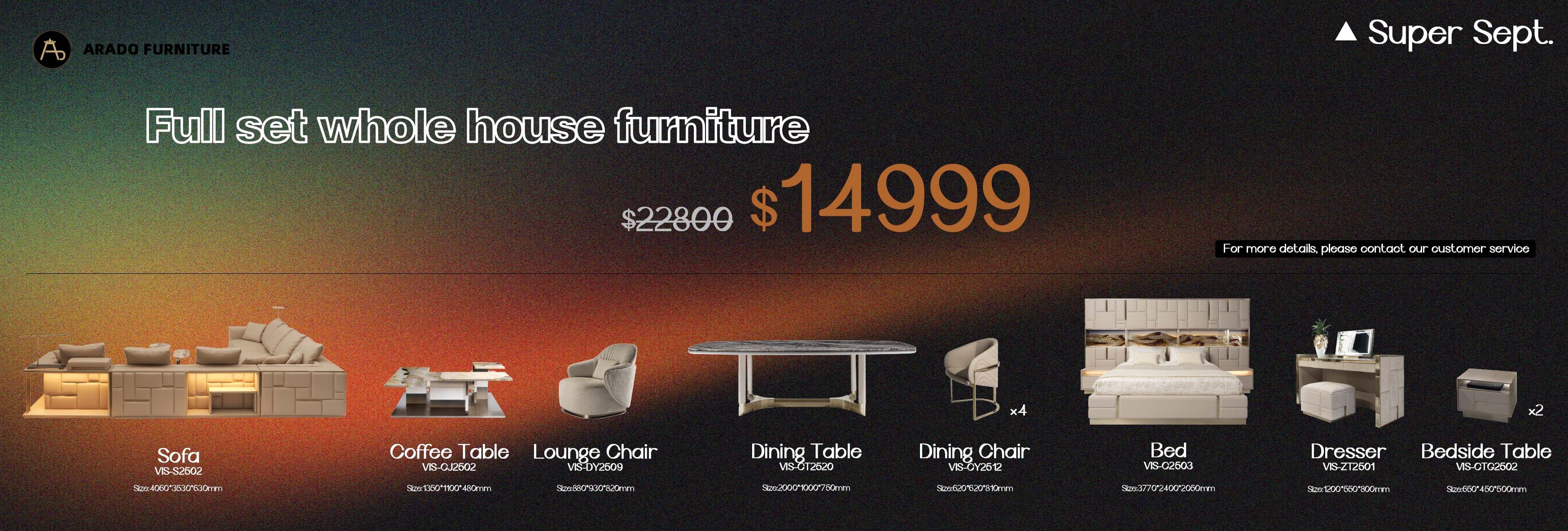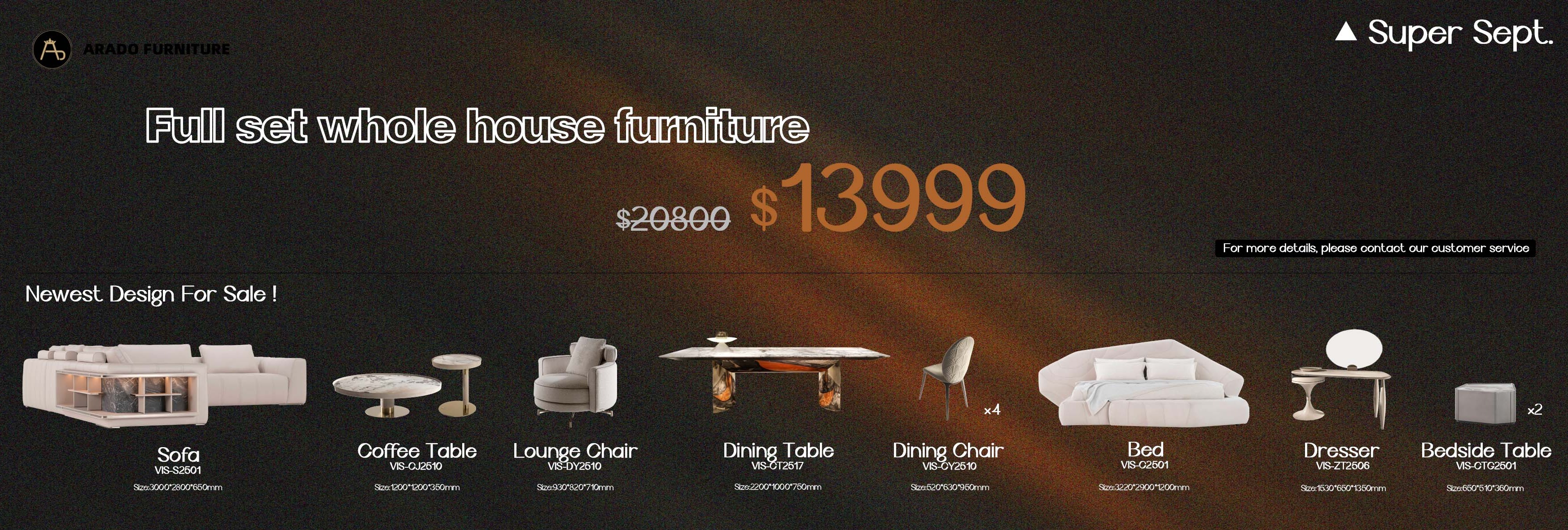 Produk utama: Set Sofa, tempat tidur lembut, meja kopi, set makan